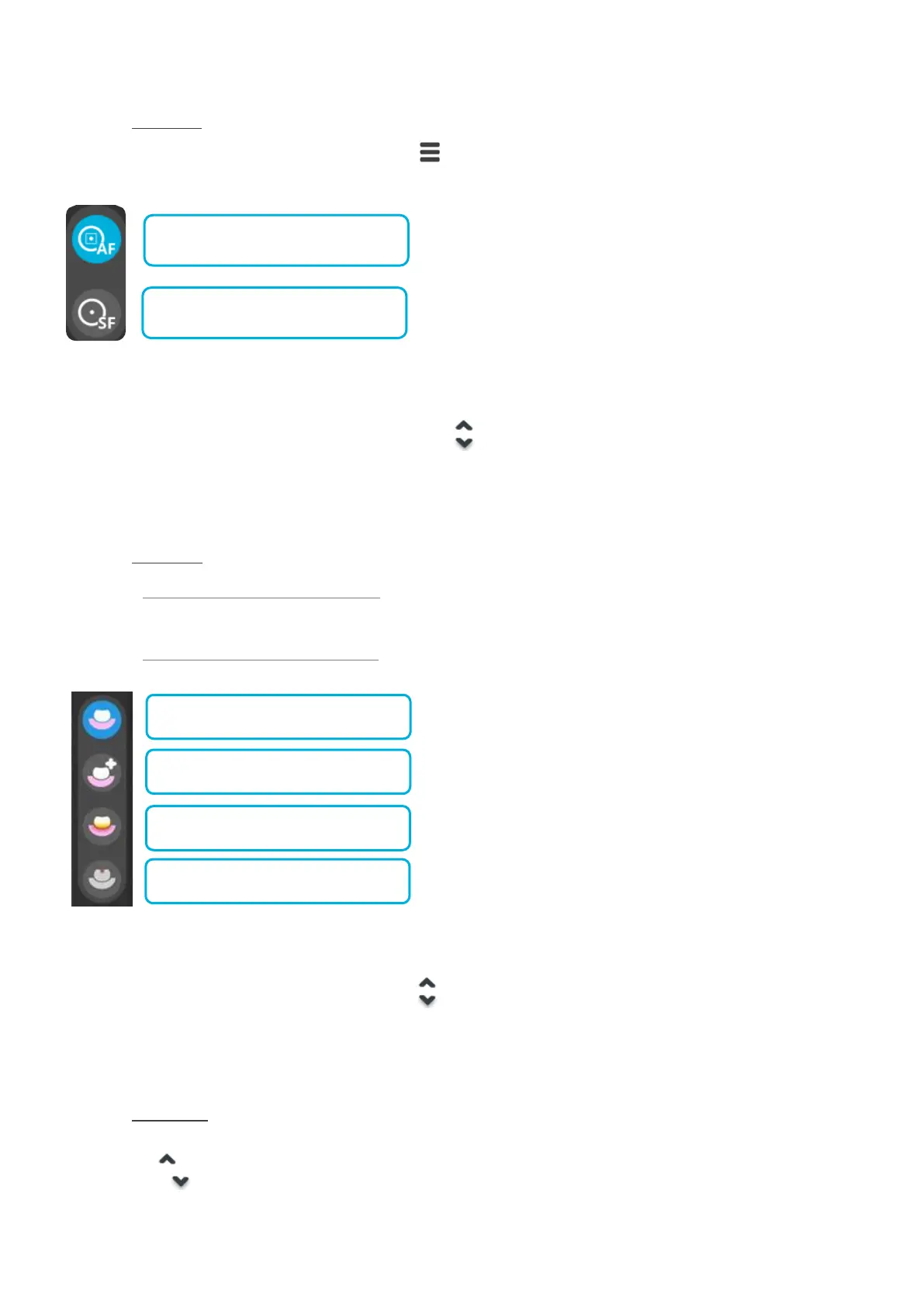 To change the focus option, press the camera arrows buttons or select the desired option with a mouse click.