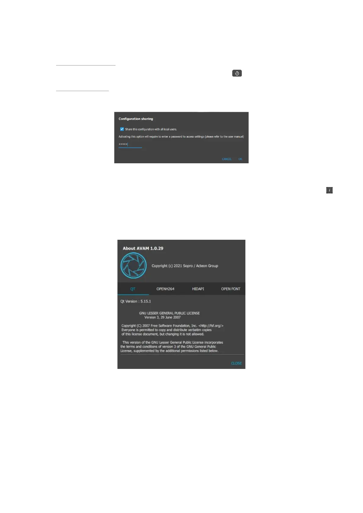 icon. From the next window that opens, information on the video acquisition module version and all the licenses used by this