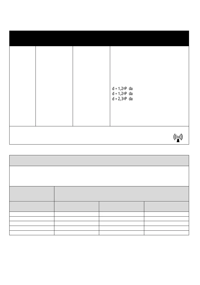 (D) in metri (m) può essere stimata utilizzando l'equazione applicabile alla frequenza del trasmettitore, dove (P)