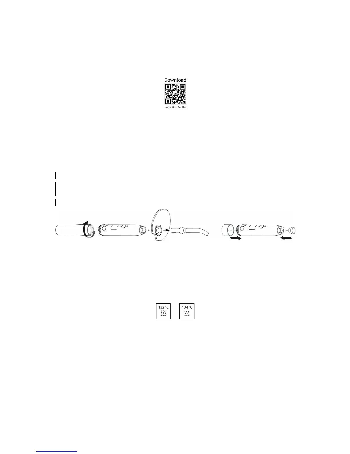 The optical guide must be cleaned and sterilised prior to use. The rigid protection shield must be cleaned and