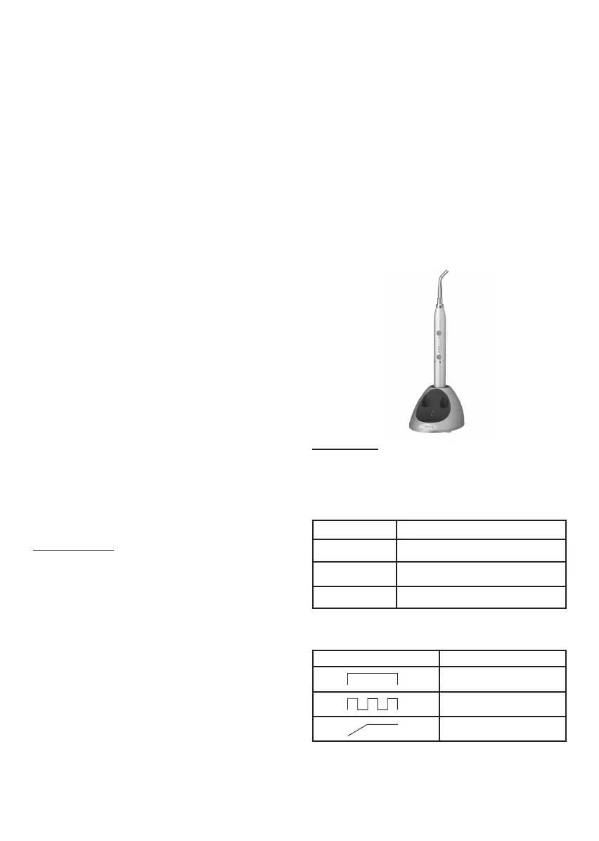 - A row of three LEDs indicates the curing mode