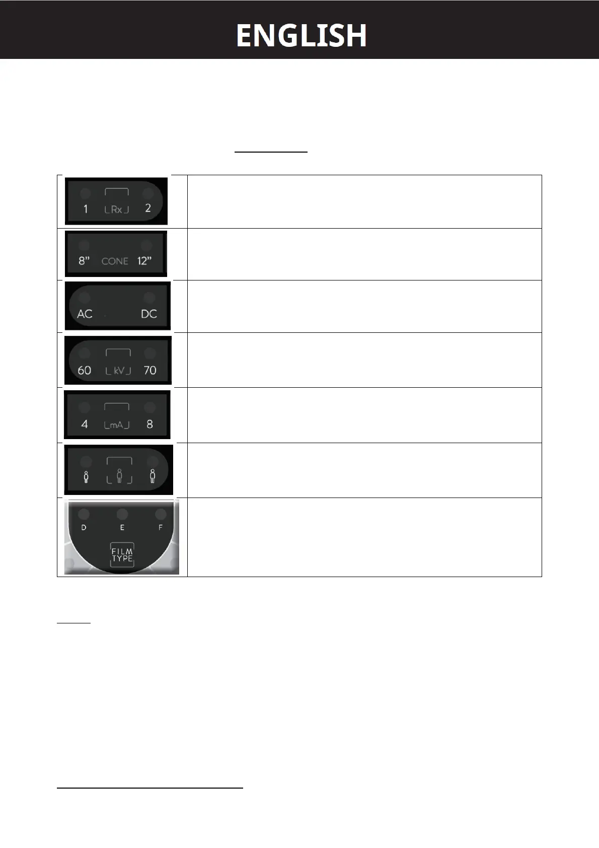On the control panel the LED relevant to the following exposure parameters will light up:
