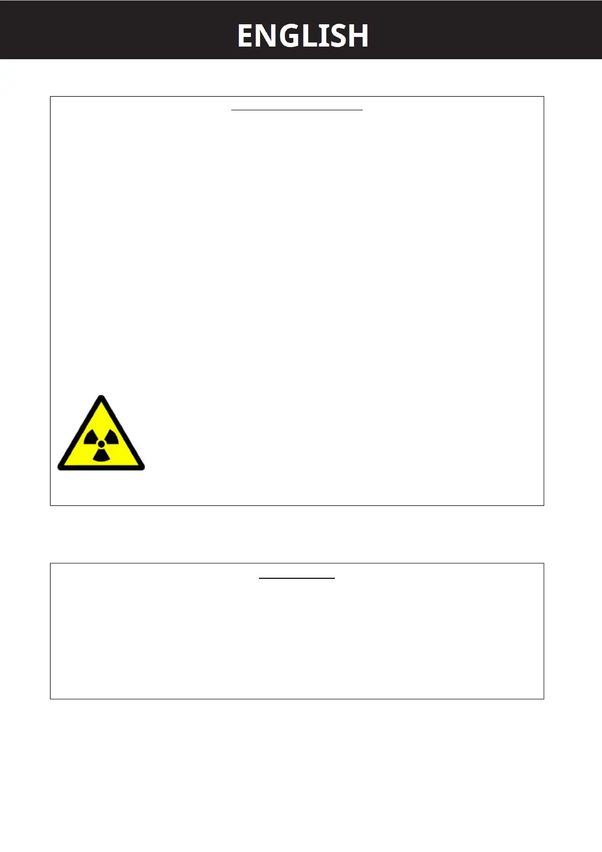 The system generates X-rays: before using this X-ray system please refer to the regulation in force in your area