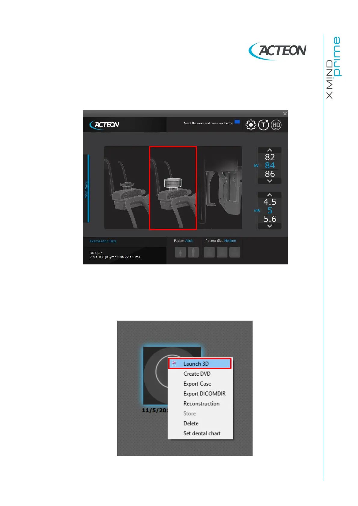 Select “3D QC” exam clicking on the central area of the virtual interface.