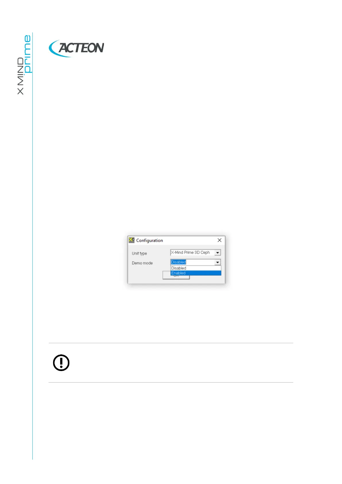 On the “Configuration” window select “Demo mode” as “Enabled”: