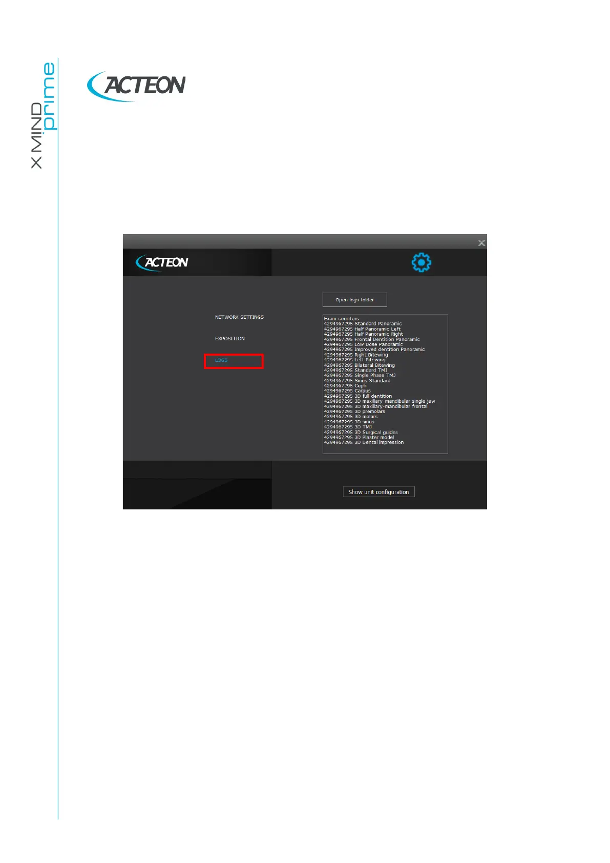 Acteon X-MIND prime 3D ceph - Logs