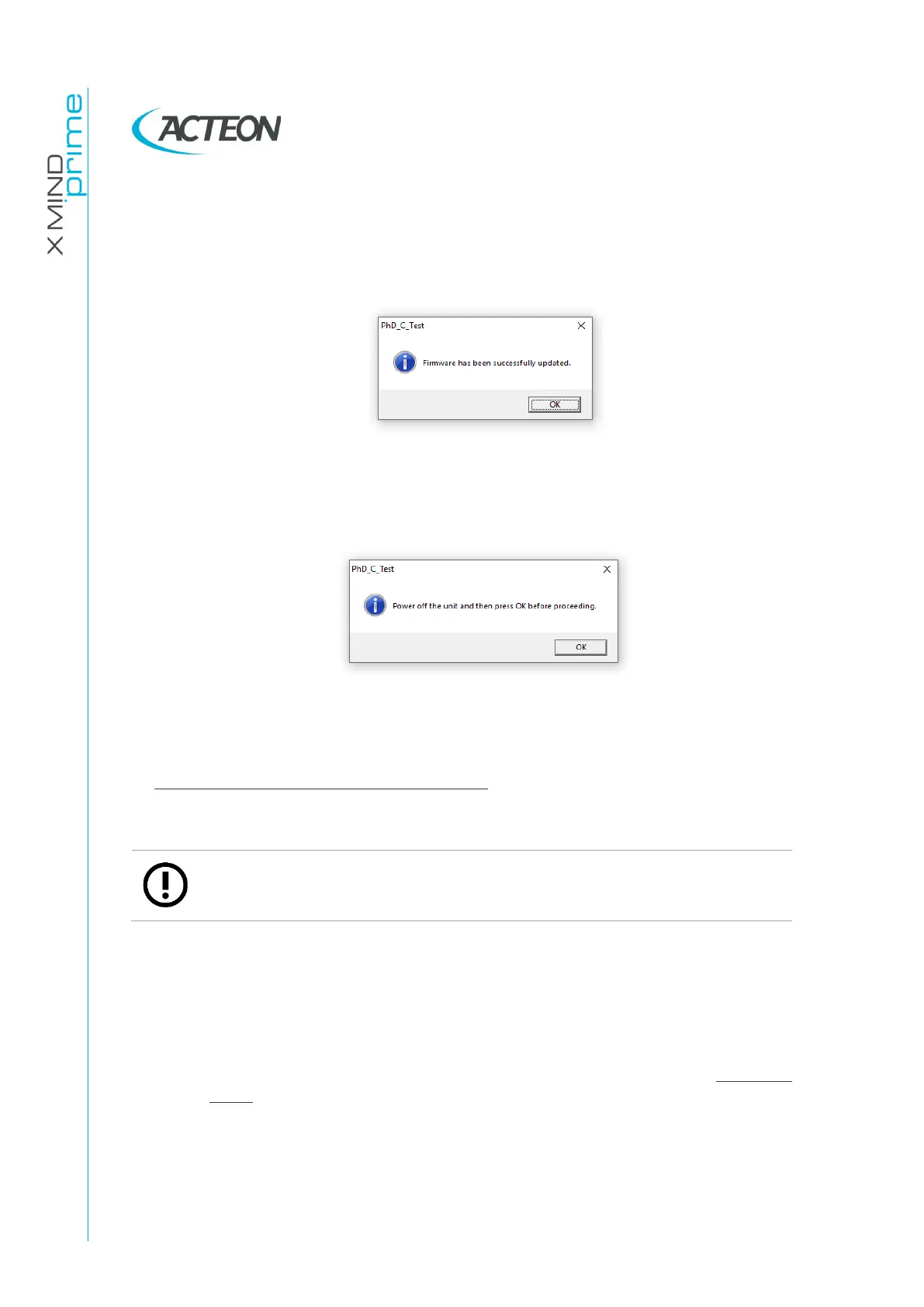 - In the PhD_C_Test selection bar select: Settings->Firmware update ->Degraded