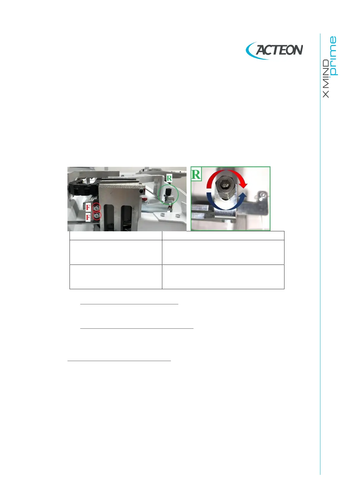 Tighten the fixing screws F and acquire again a check image