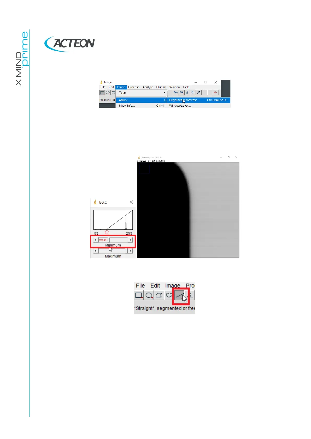12. Adjust the “Minimum” level with the cursors, in order to enhance the contrast of the