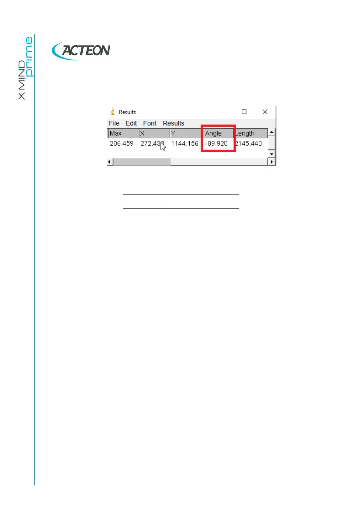 keyboard. The angle will be displayed in the ImageJ “Result” window under the