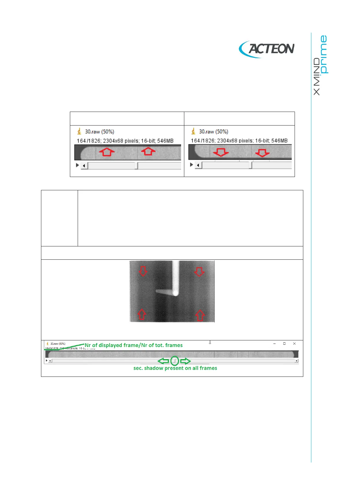 collimator shadow has to be searched in the lasts frames.