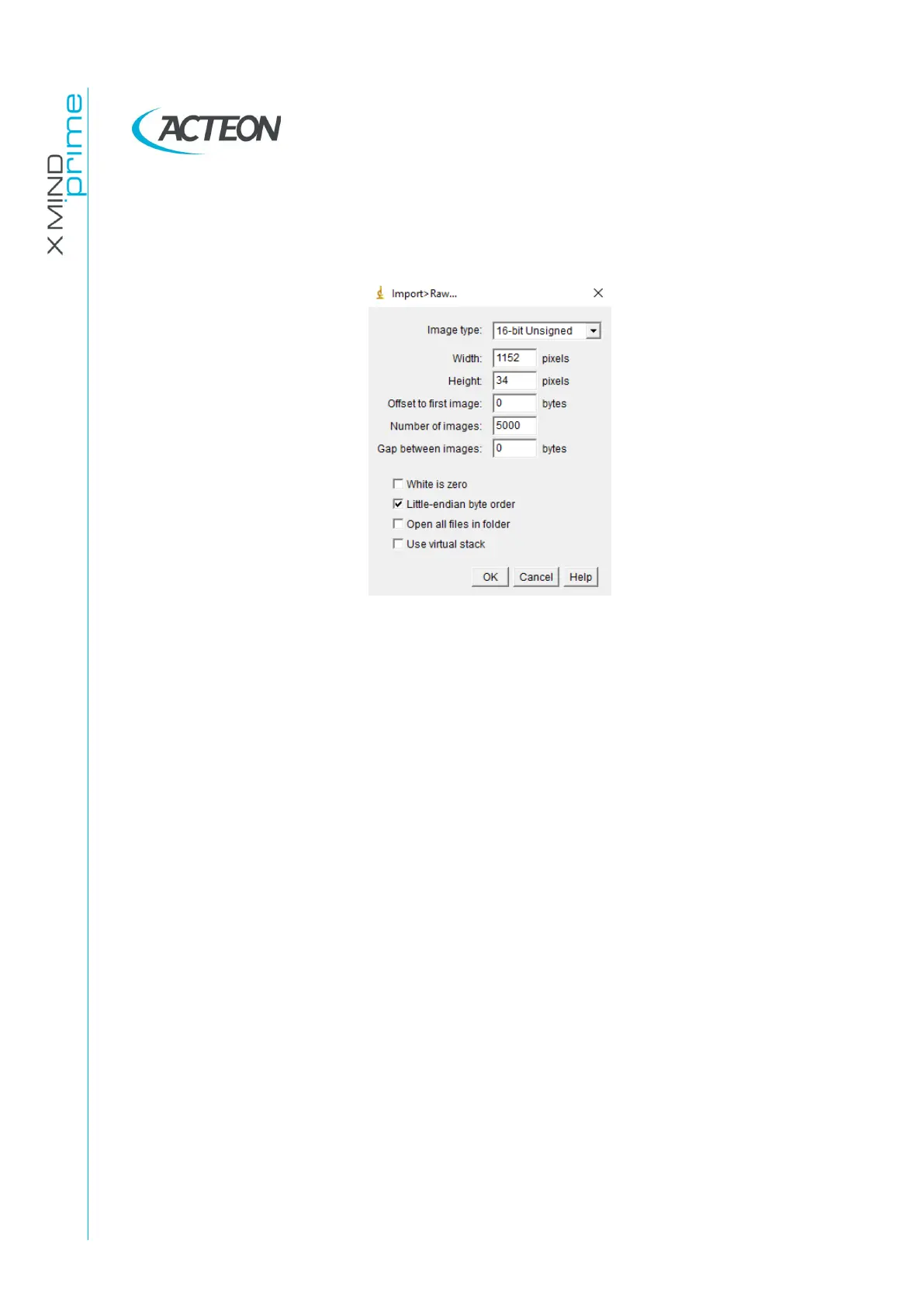 39 using the following setting in the “Import>Raw…” window instead of the values