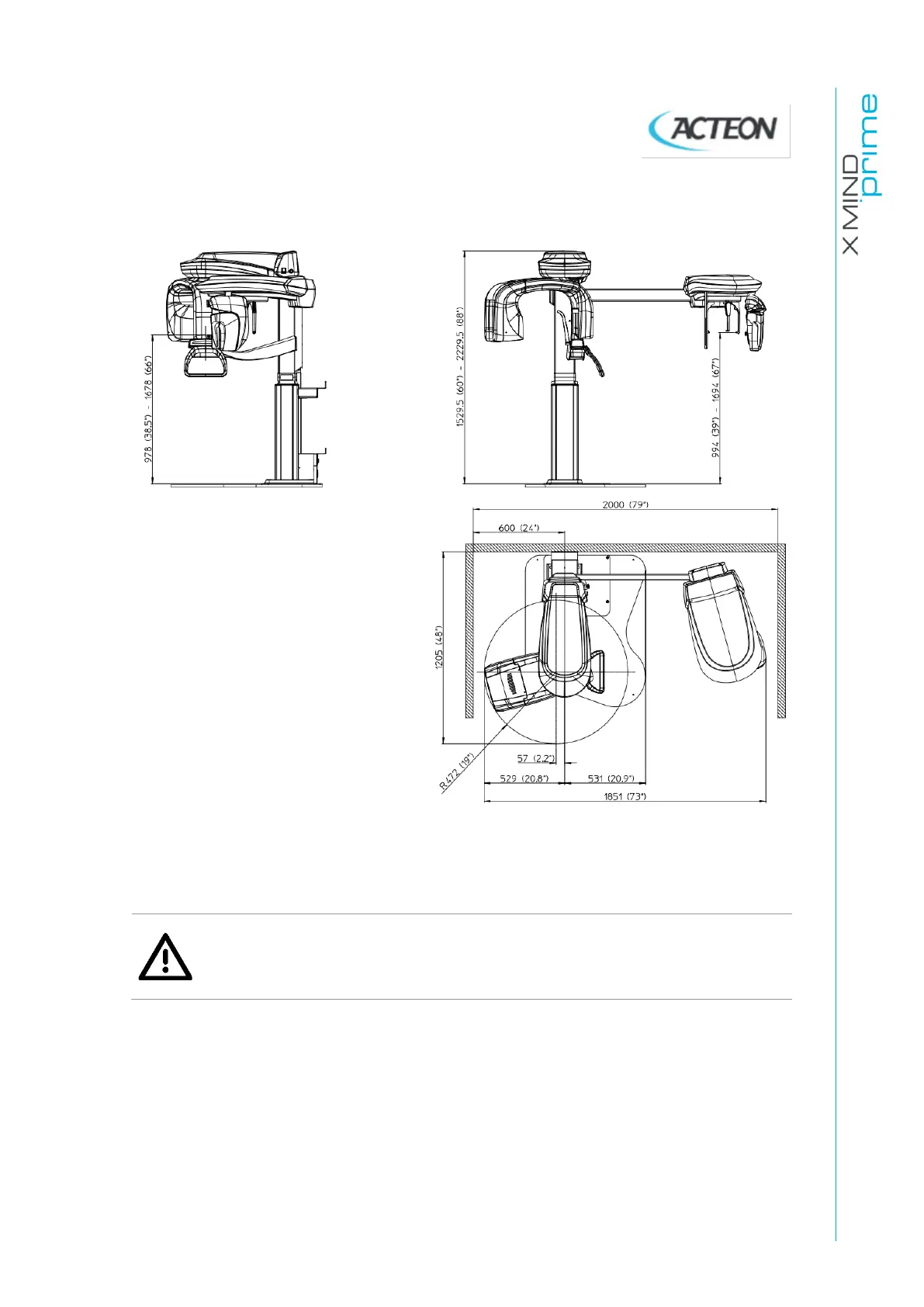 Figure 7: X-MIND prime 3D dimensions Free-standing version