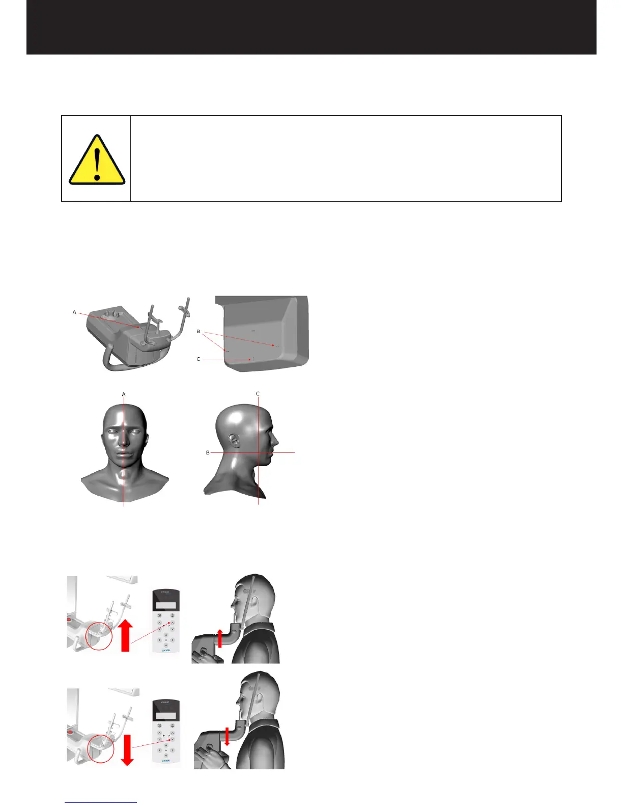 Once the patient is positioned correctly with respect to the lasers, adjust the chin rest support by means of the control panel