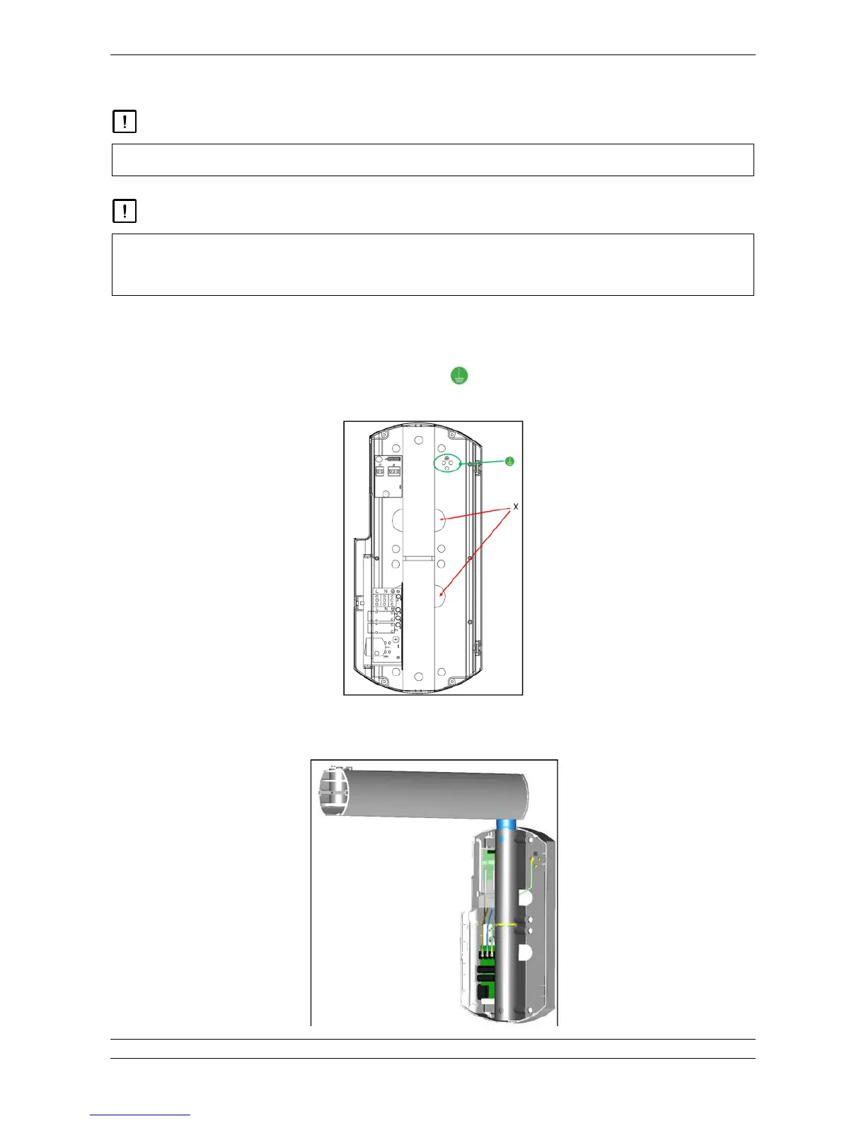According to the configuration (TOP or BOTTOM), all the cables coming from the bracket must exit from the topright holes DE as