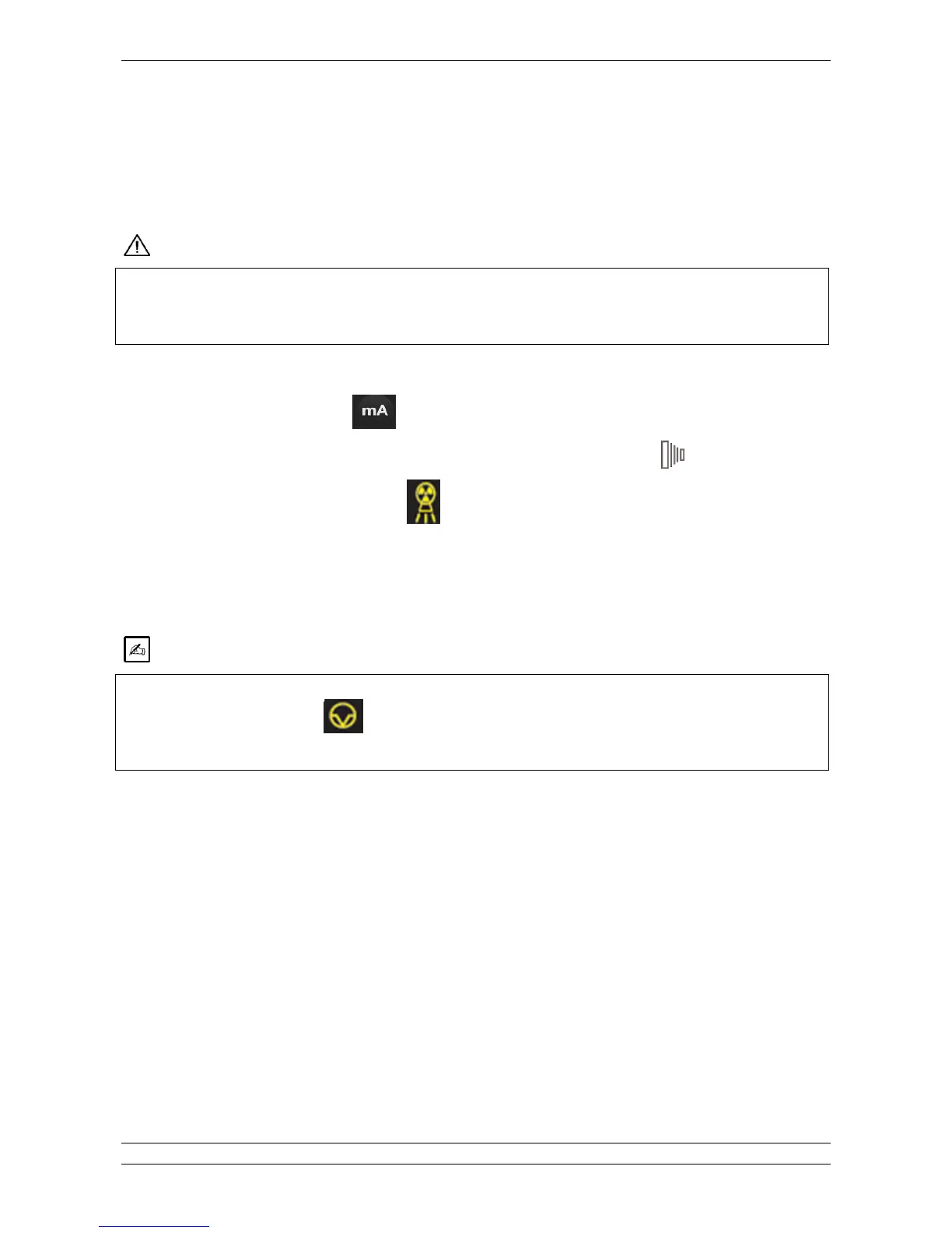 2. Take a safety position far from the xray beam, press and keep pressed the exposure key . On the display will appear