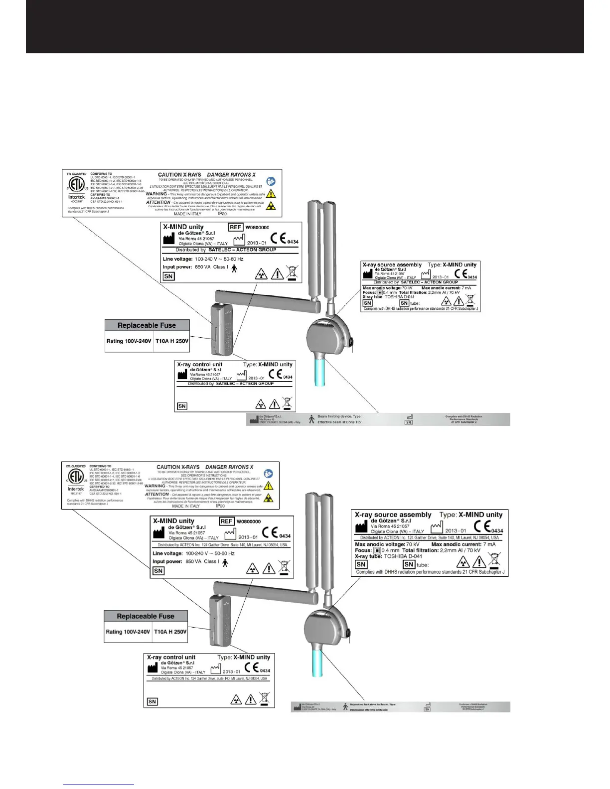The identication tags on the tube head, timer and cone indicate the model number, serial number, the manu-
