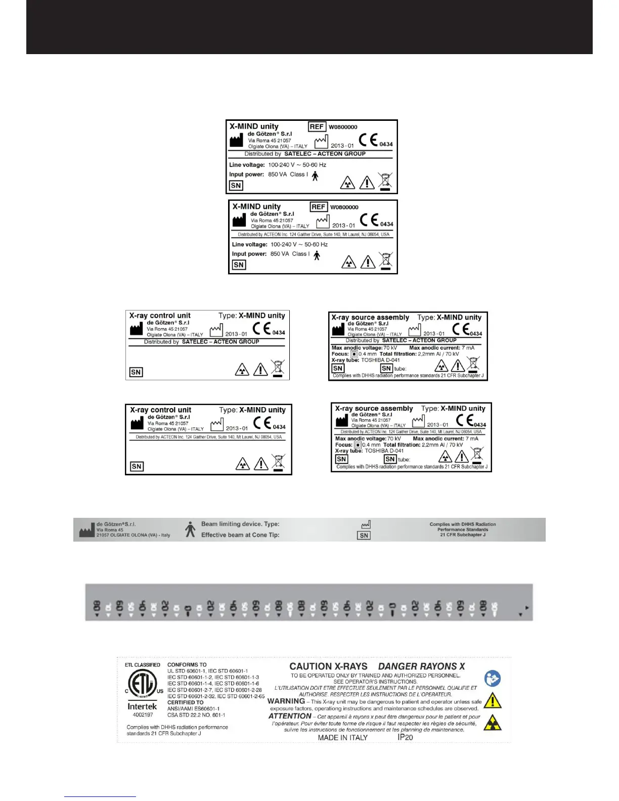 X-MIND unity Control Unit (Timer) Label X-MIND unity X-ray source Label