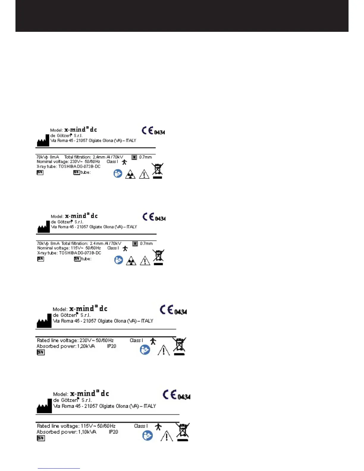 The identication tags on the tubehead, on the timer and on the cone indicate the model number, the serial