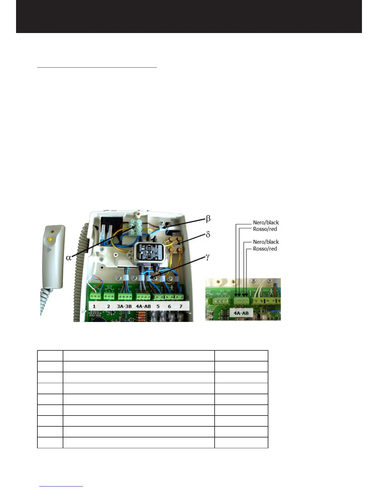 1. Connect the power supply cable to the terminal board α.