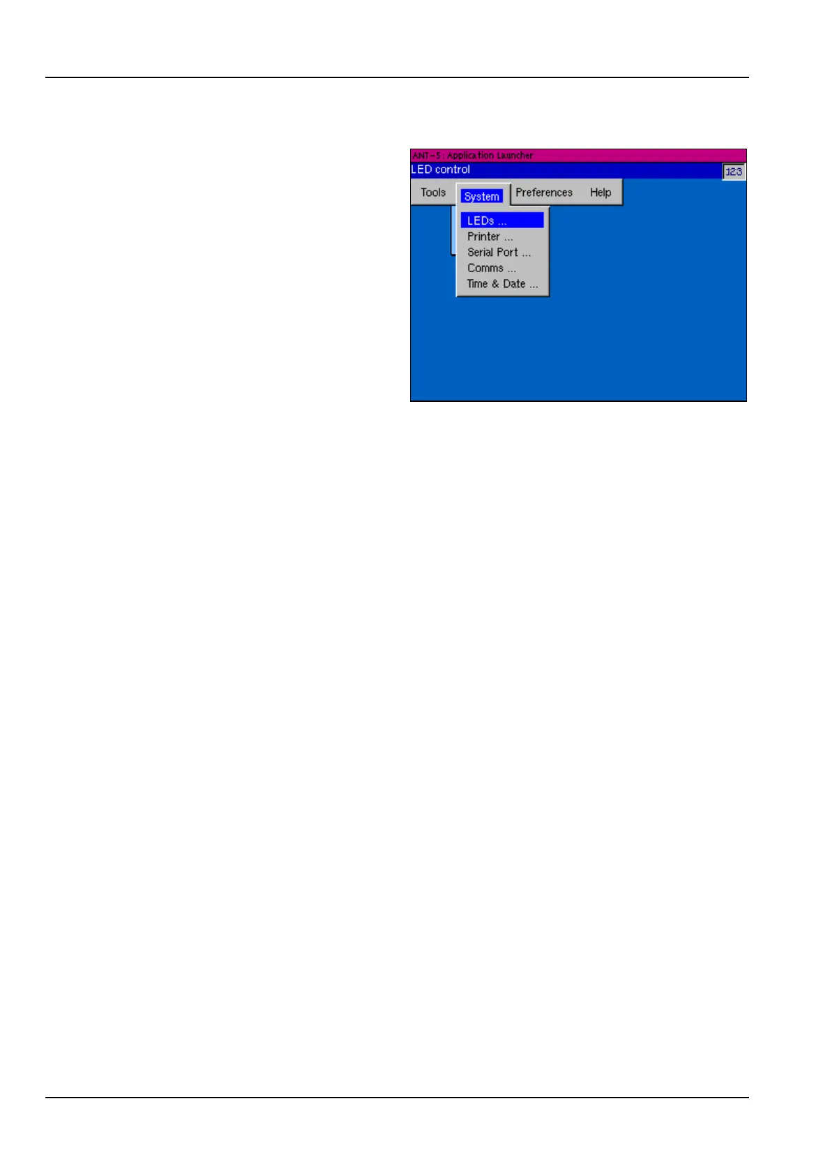 setup of the application. The behaviour of the on-screen LEDs can be set to be
