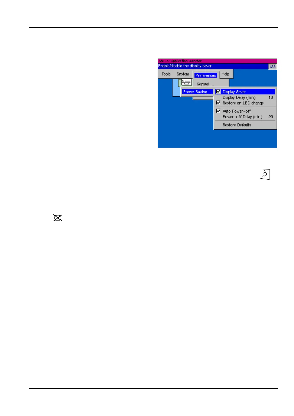 This section can also be used to set up the ANT-5 to restore the screen automatically