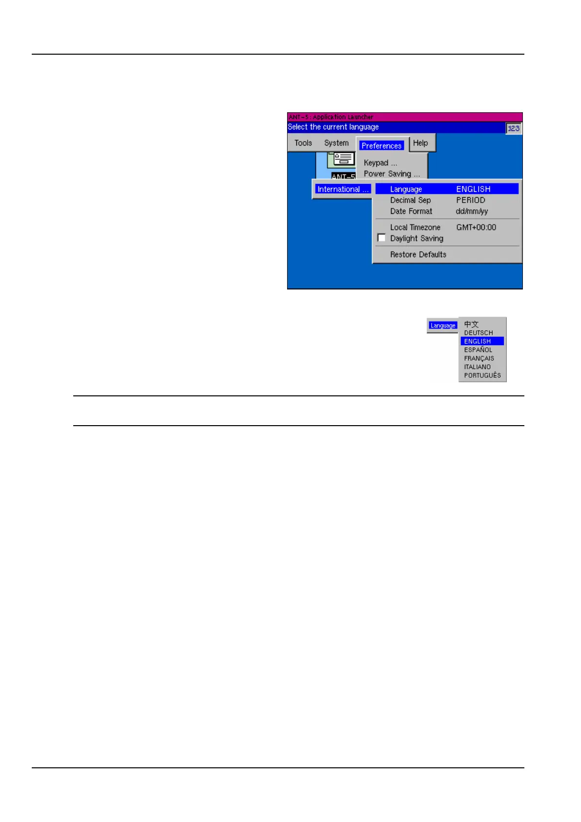 Note: The ANT-5 operating system will need to be re-started before this change can