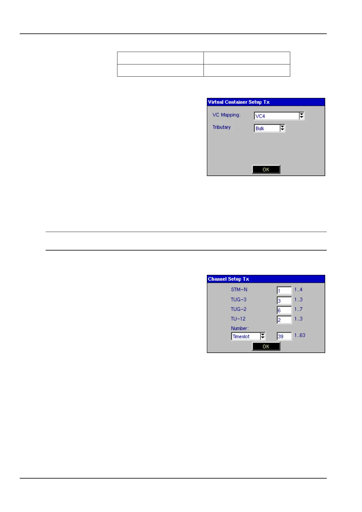 VC-12s or other complicated mappings. On entering a VC number, the TUG and TU