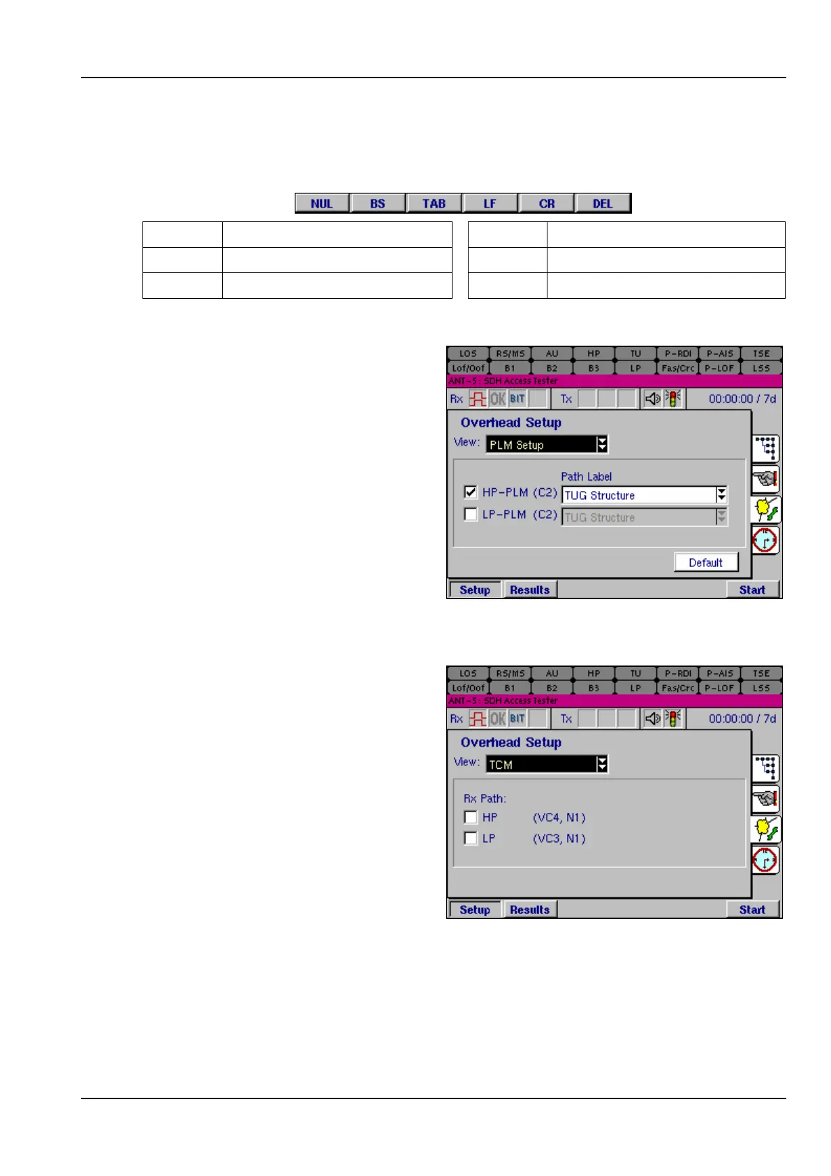 for expected and transmitted bytes. Alphanumeric characters can be entered using the