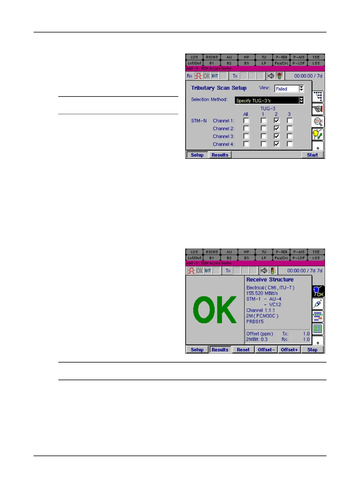 range of tabbed pages, similar to the setup pages. Some of the results pages use a