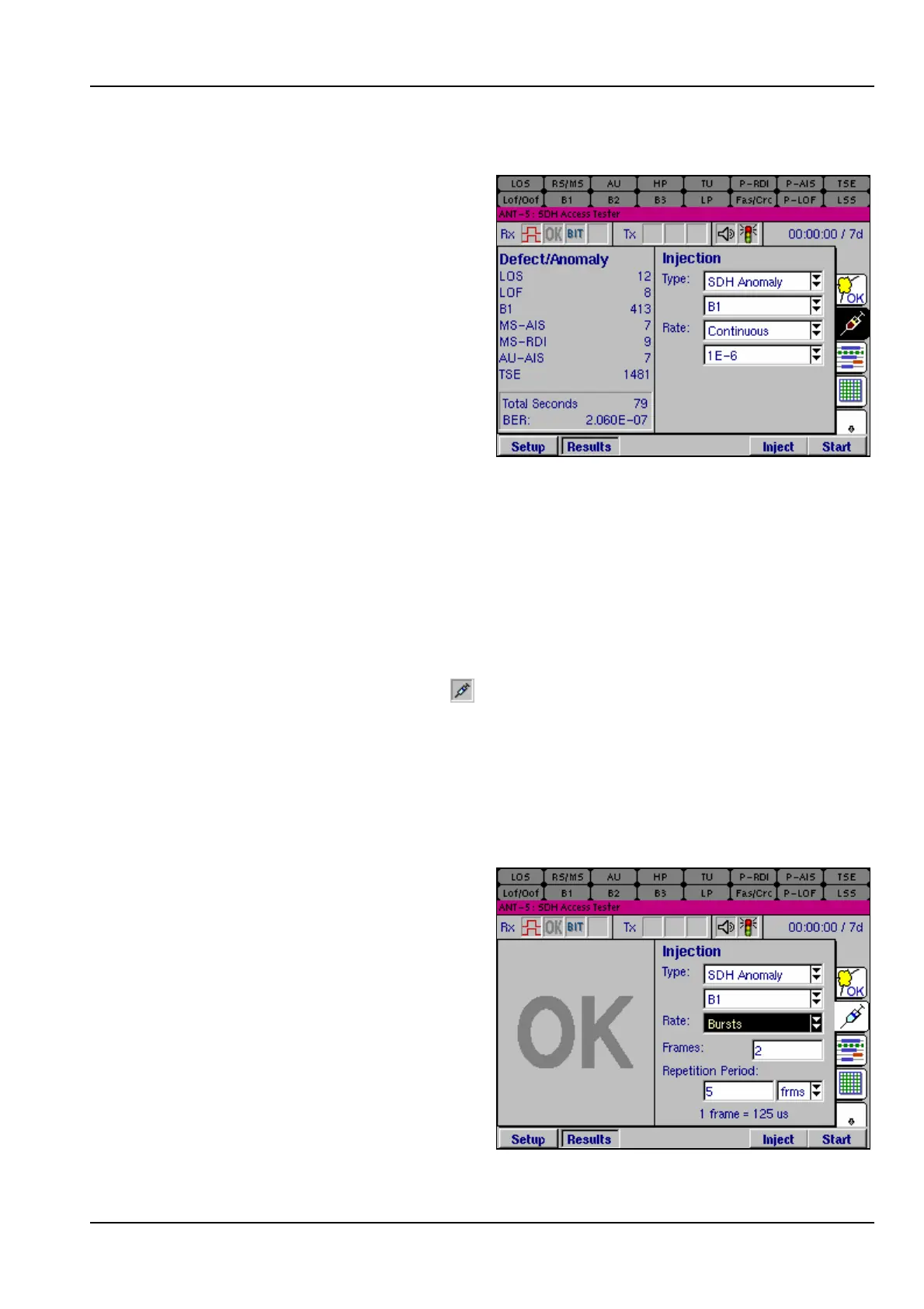 To inject a single anomaly into the Tx path, set the Rate to Single then press the