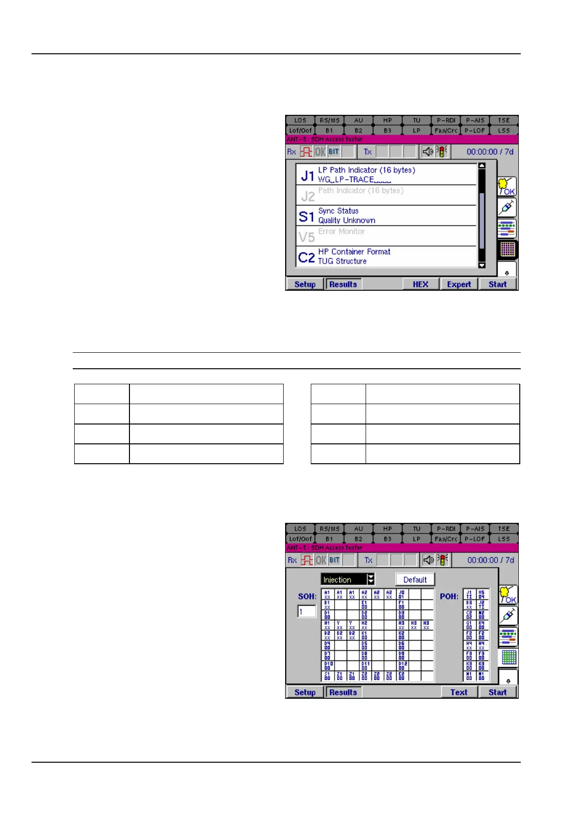 Injection mode, the transmitted SOH & POH bytes are displayed.
