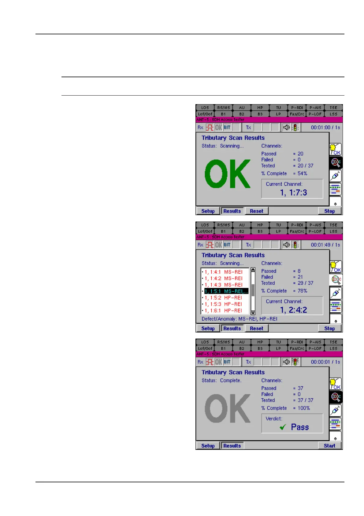 Note: Select Tributary Scan from the Measurement Selection page. See Section
