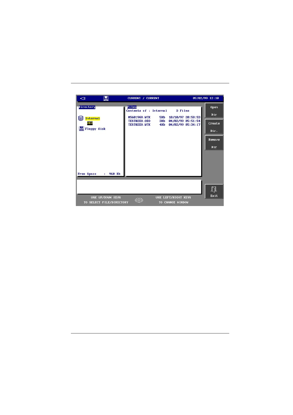 <Create Dir> to create a new directory in the selected media or directory (seven