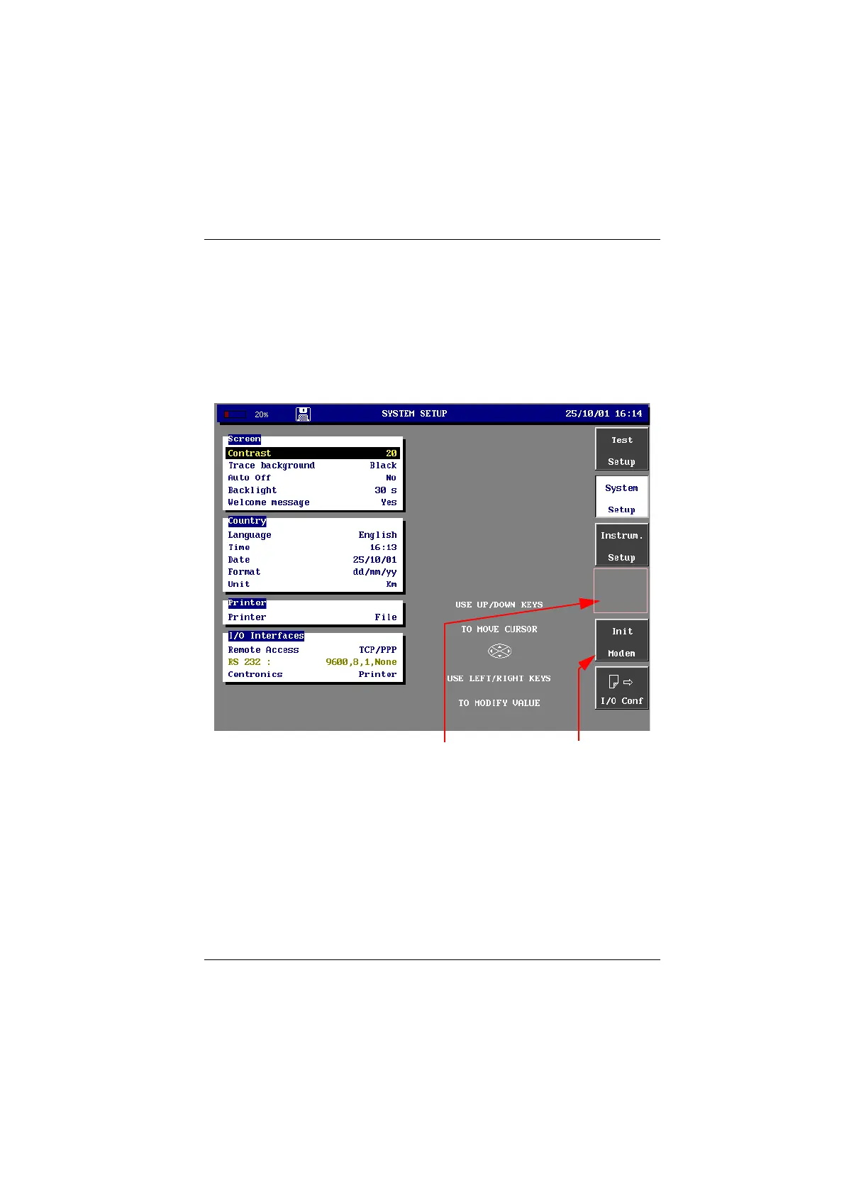 SET-UP button, then with the <System Setup> key, in the Screen