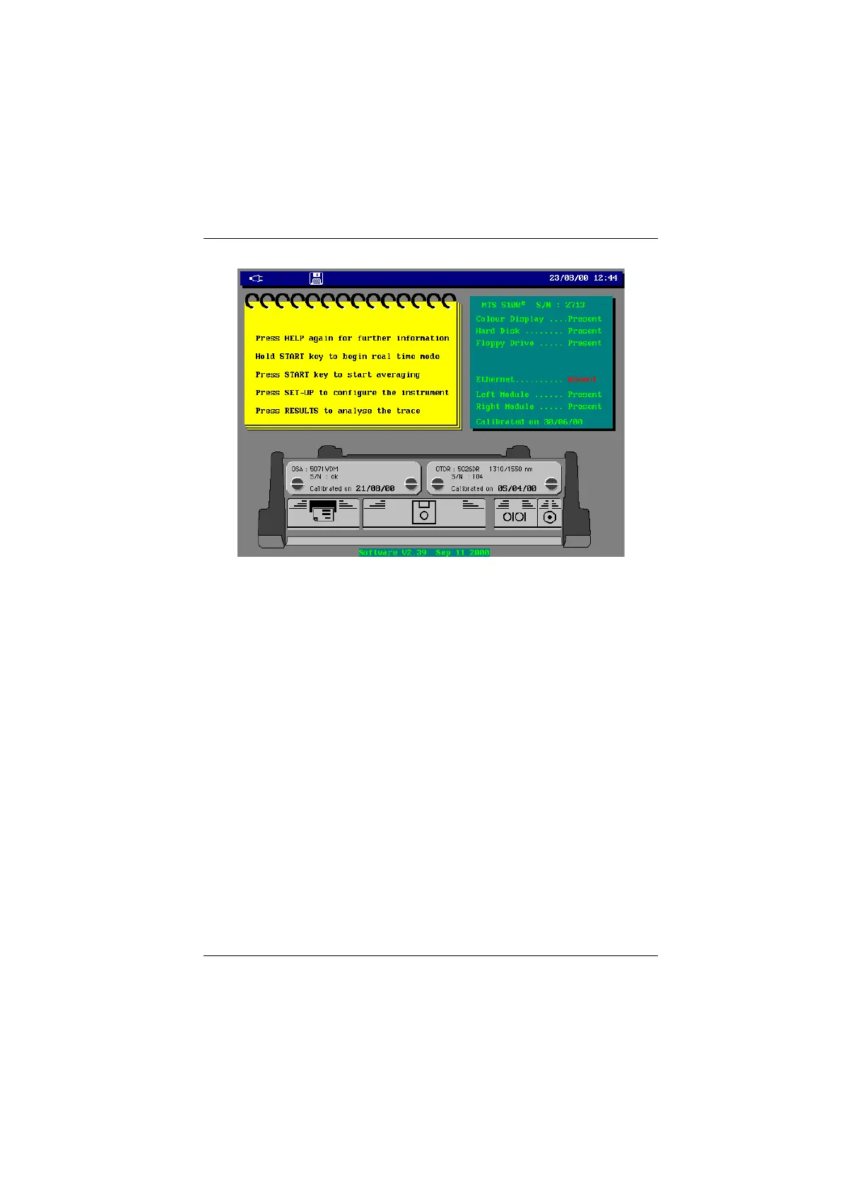 Welcome message (example with MTS 5100