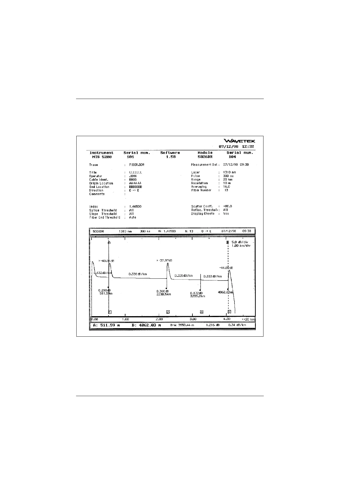 Examples of OTDR print out