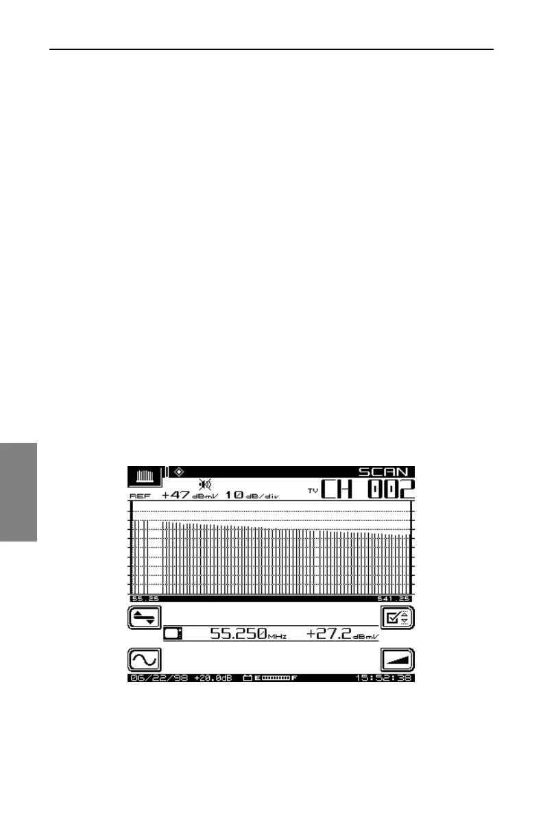 • At the top left of he screen are reference level value in dBmV and the