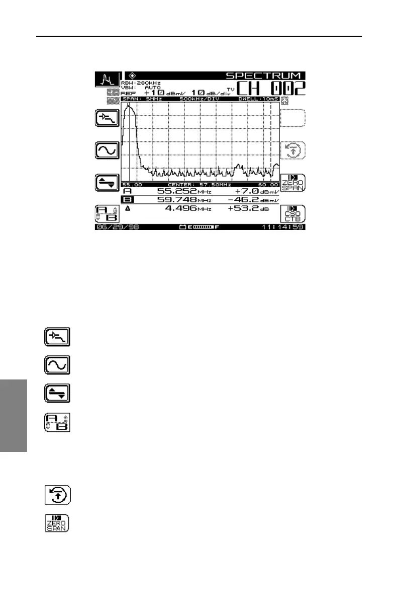 Below are the primary functions of the soft keys in the SPECTRUM screen.