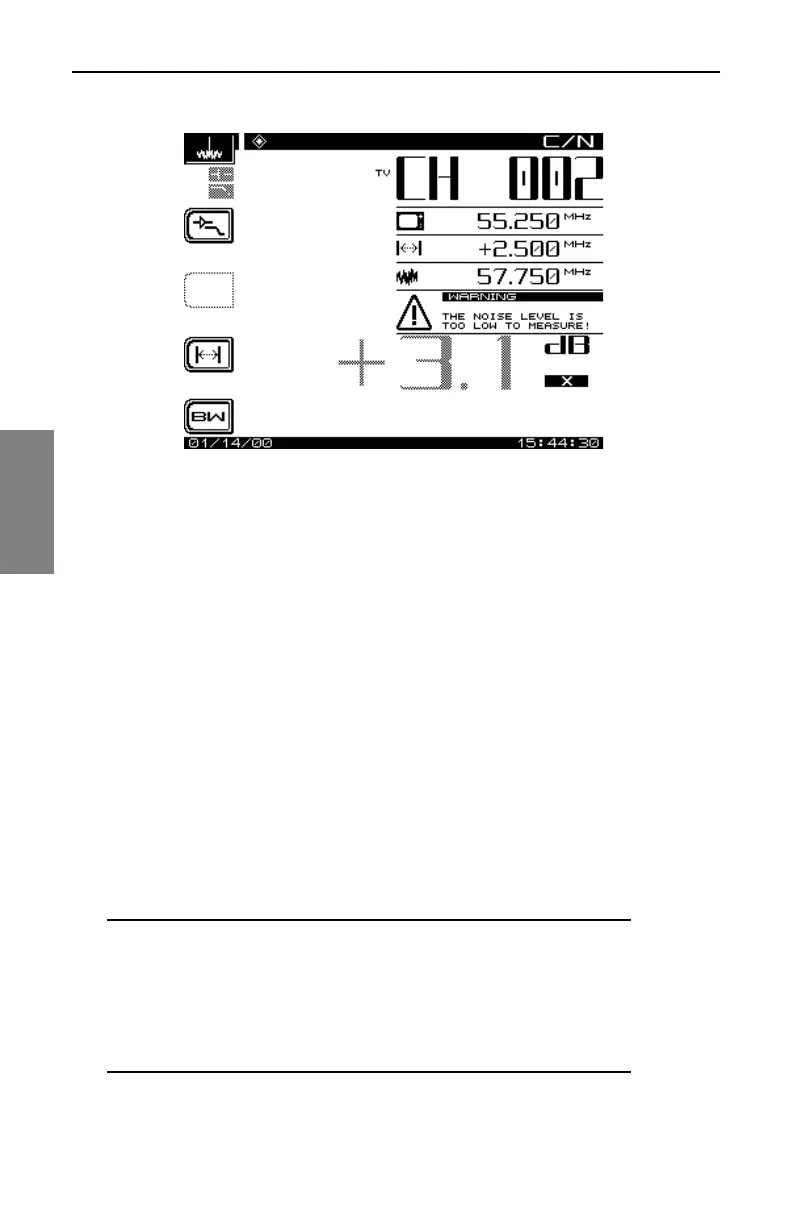 key. The C/N ratio of the tuned channel or frequency will be displayed.