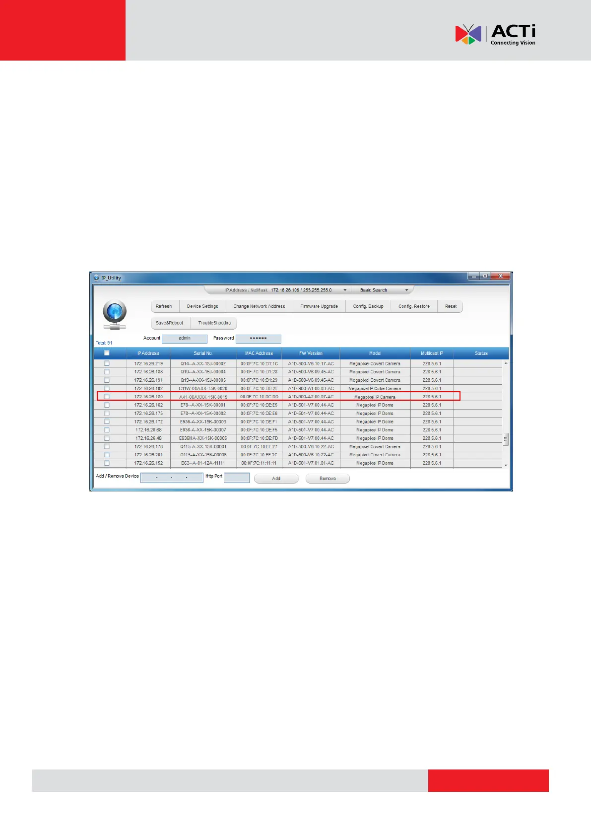 When you launch IP Utility, the list of connected cameras in the network will be shown. See