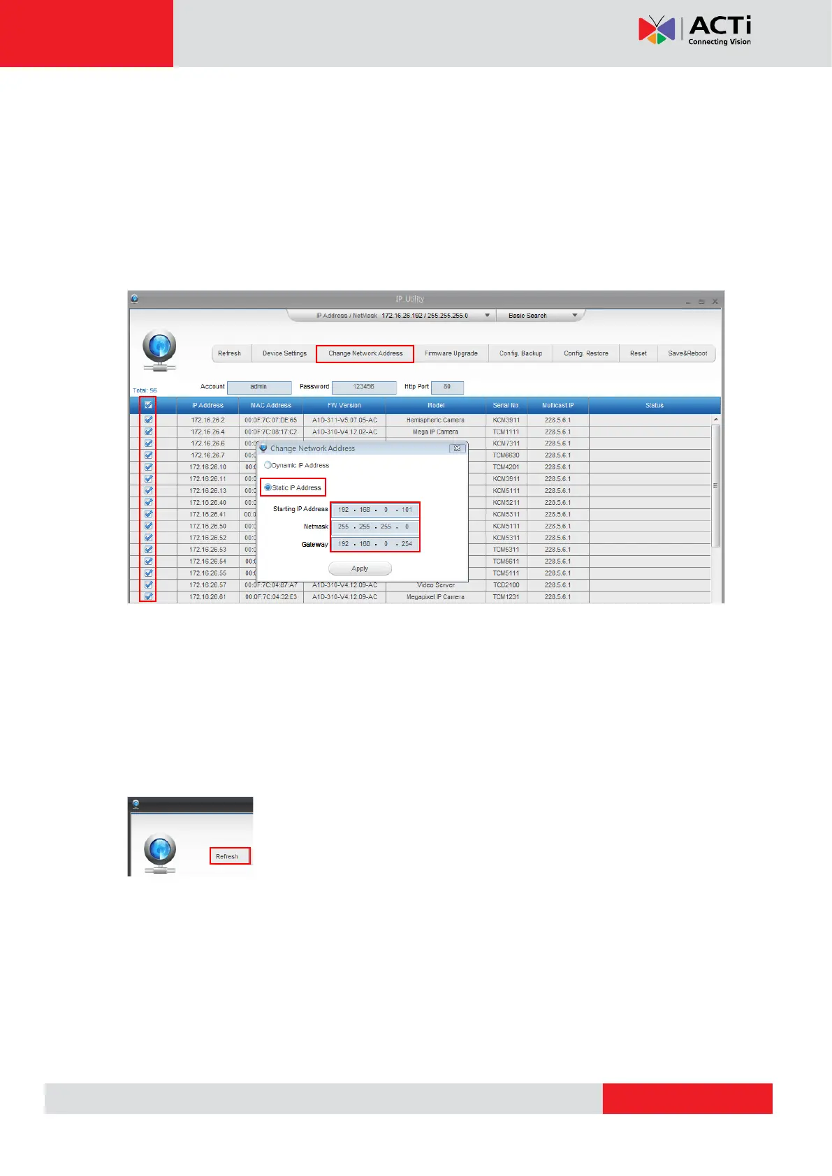 Later, by pressing the “Refresh” button of the IP Utility, you will be able to see the list of