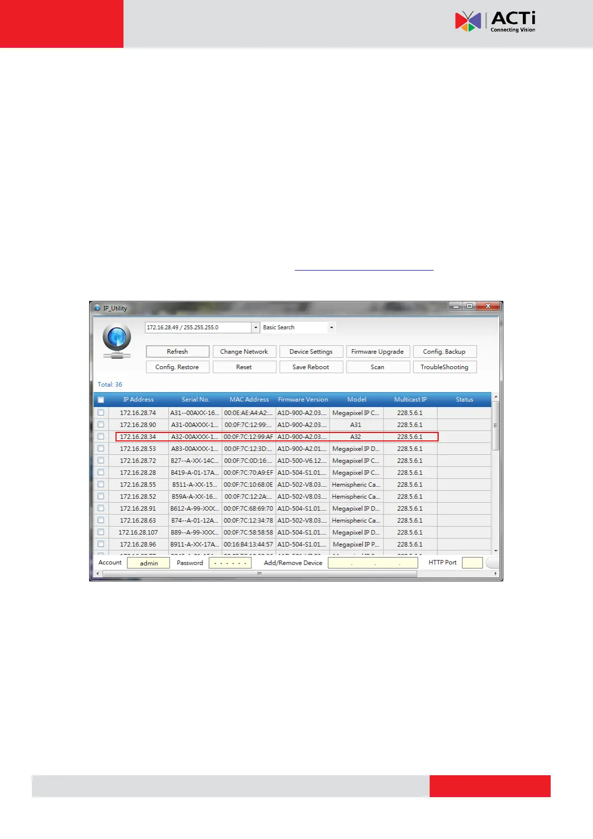 The IP Utility can be downloaded for free from http://www.acti.com/IP_Utility