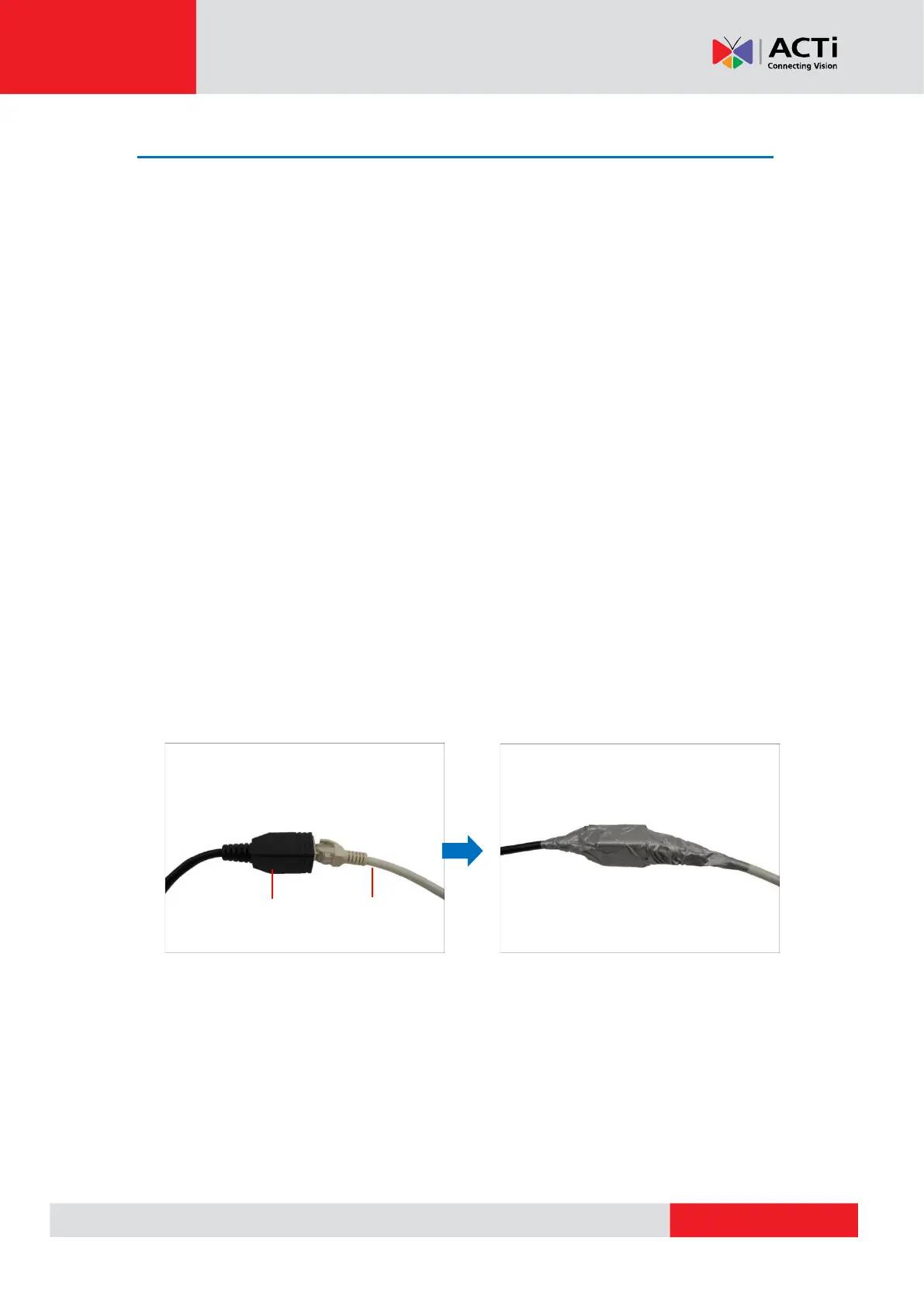 Connect an Ethernet cable from the network side to the Ethernet port of the camera and wrap