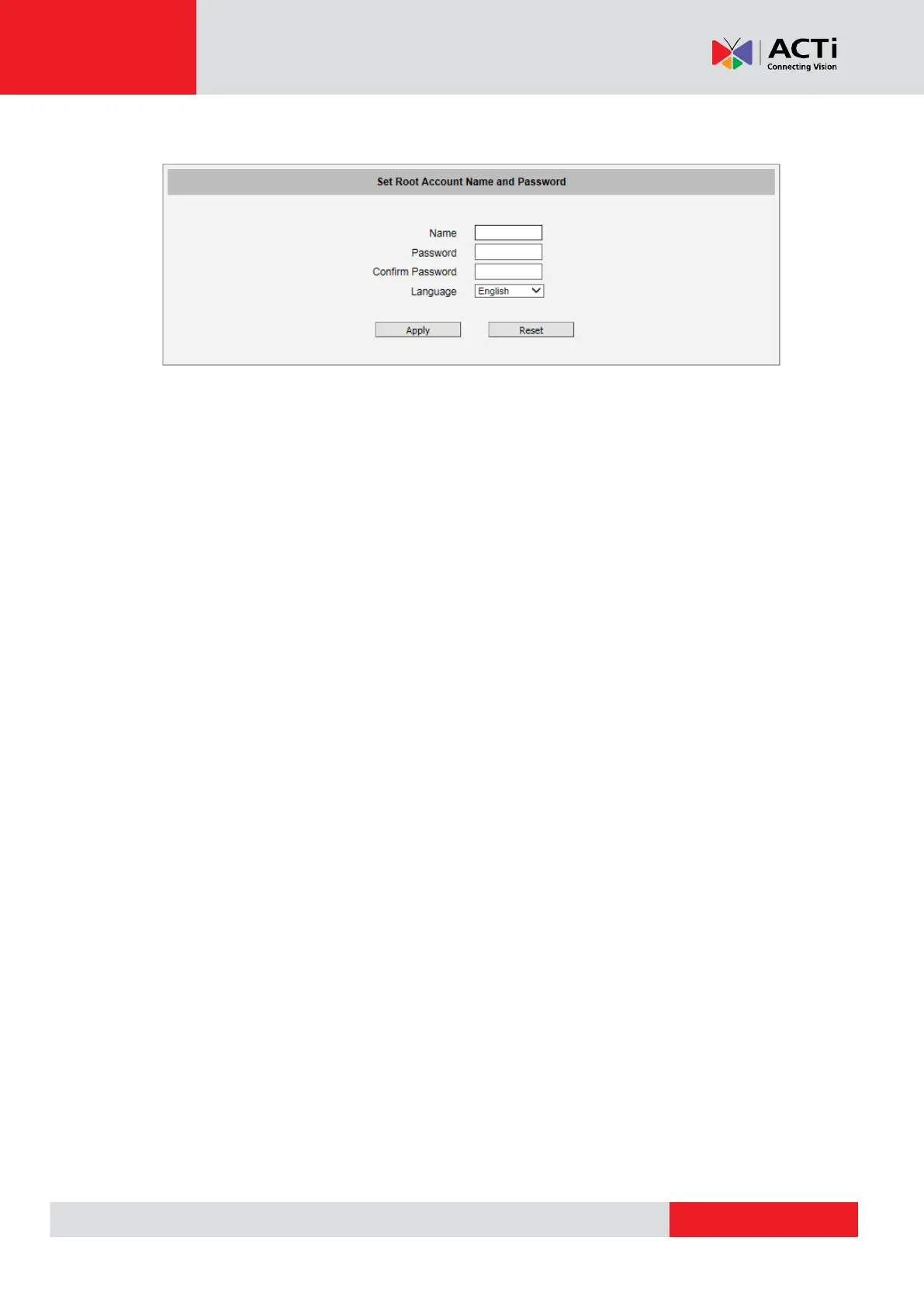 Before logging in, you need to setup the root Account and Password of the camera.