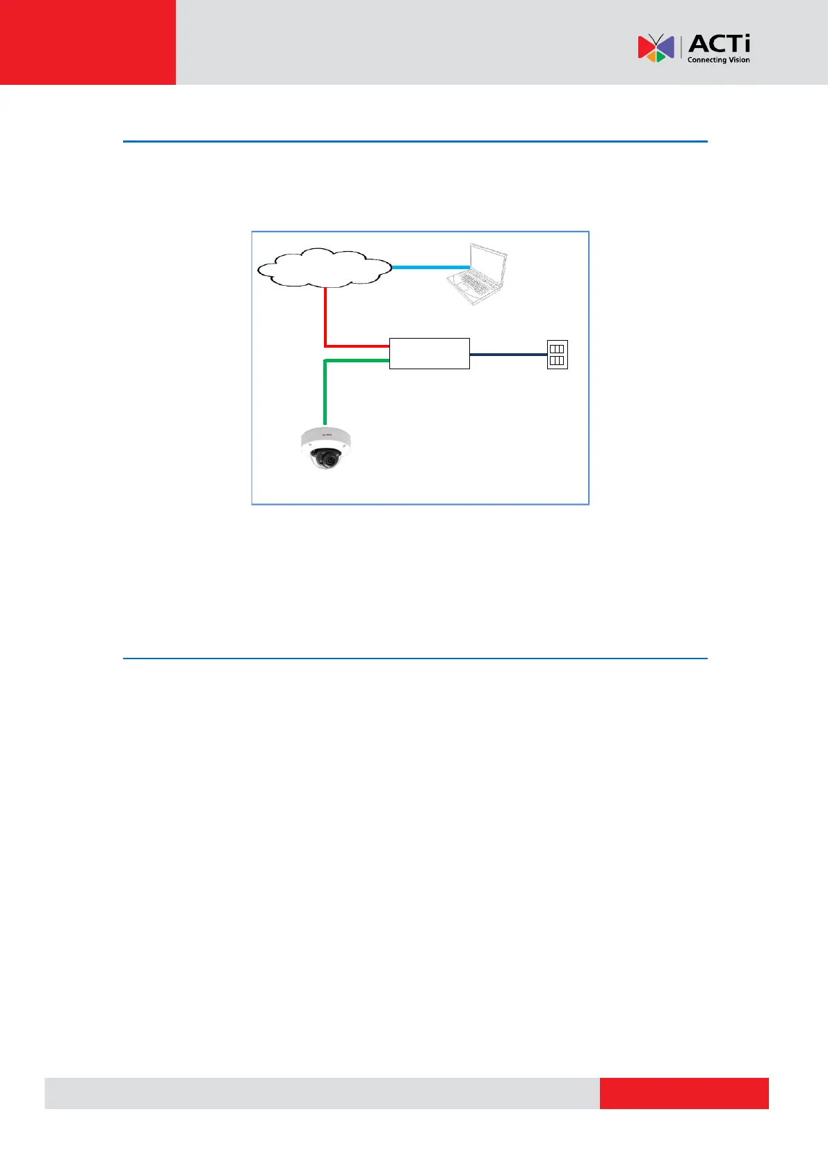 Connect the other end of the network cable to a switch or injector. Then, connect the switch or