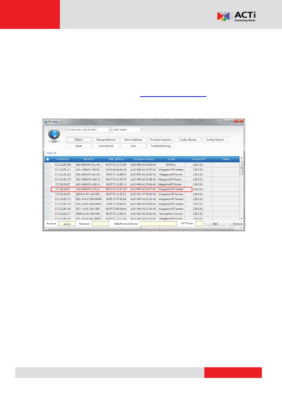 The IP Utility can be downloaded for free from http://www.acti.com/IP_Utility