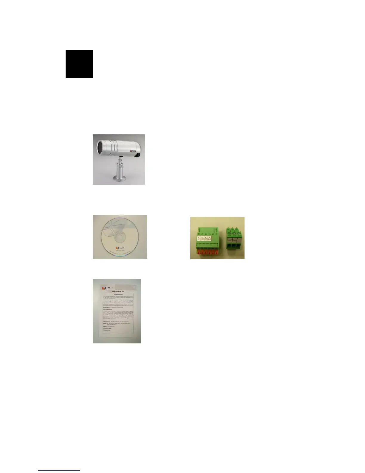 ACTi ACM-1231 - Product Introduction and Features; Package Contents Overview