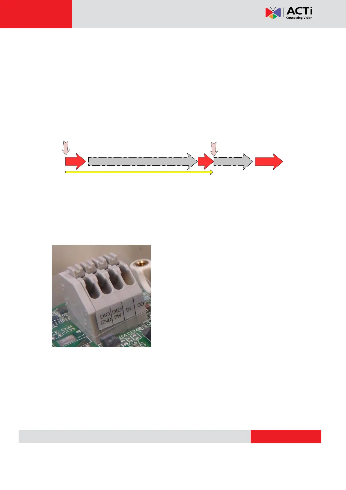 The IP device supports Digital Input / Output with terminal block connections. Pushing down the