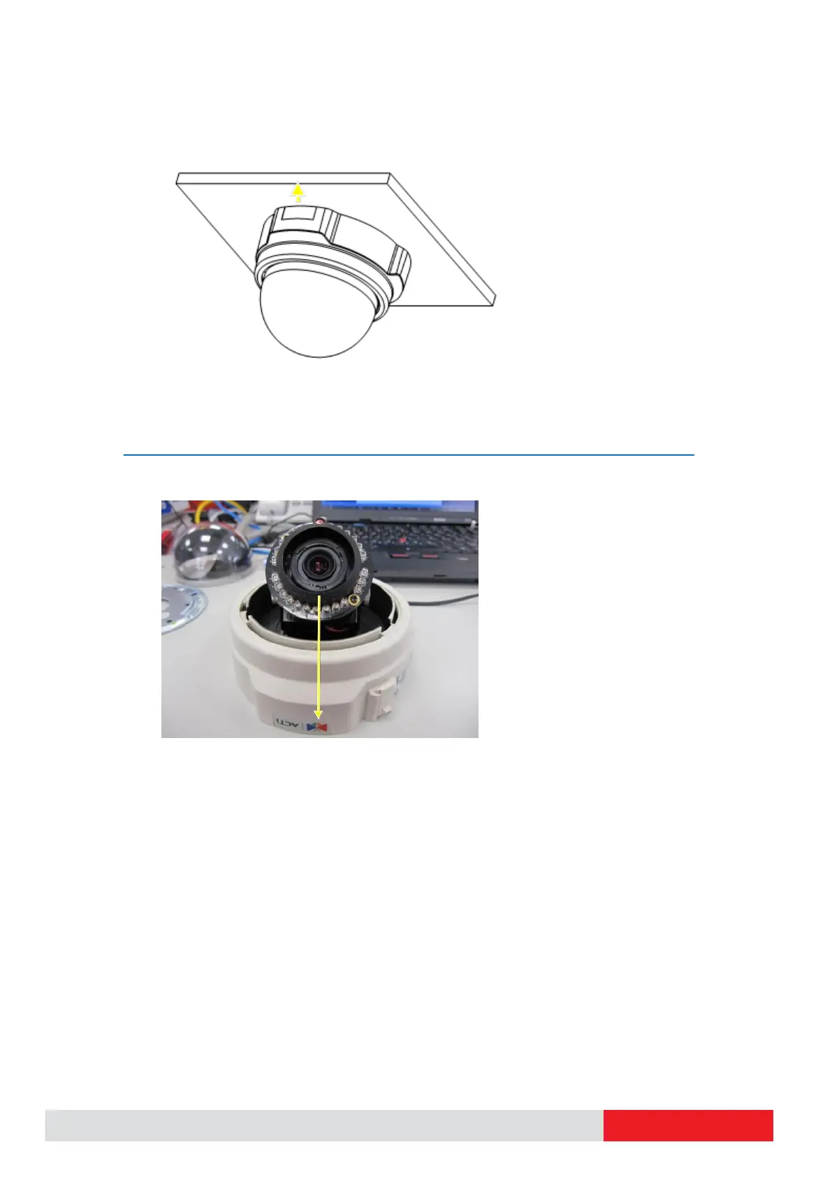 10. Fasten the camera to the ceiling. The ACTi logo (the butterfly) should now be